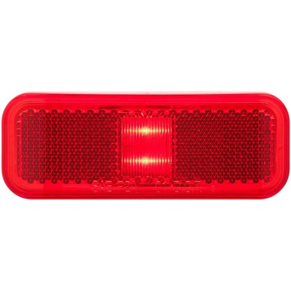 LED; Rectangular; 4 Inch Length x 1-1/2 Inch Width x 15/16 Inch Depth; Red Lens; ABS Housing; With Reflex Lens; 0.04 Amp; 12 Volt DC; Surface Mount; Polypack Packaging