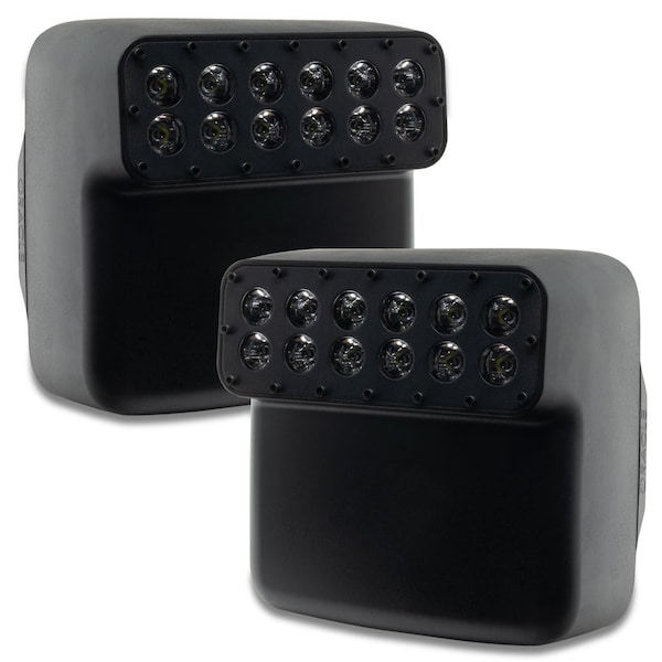 Full Cover, Black, Polycarbonate, Set Of 2, With Integrated LED Lights Providing Peripheral Illumination, 24 Cree LEDs, 2200 Lumens Output, 45 Degree Beam Angle