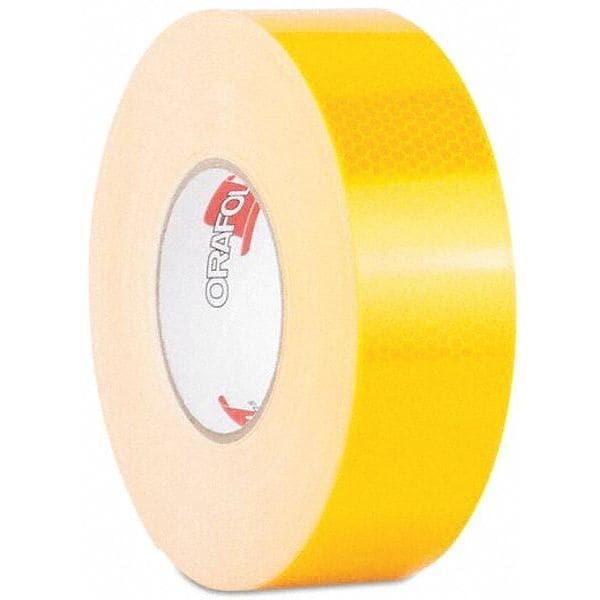 Reflective Tape, Reflective Color Yellow, Width 2 in, Length 50 yd, Adhesive Material Acrylic, Backing Material Polycarbonate, Thickness 9 mil, Adhesion Strength 96 oz/in, Outdoor
