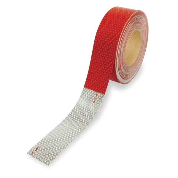 Reflective Tape, Reflective Color Red, White, Width 2 in, Length 50 yd, Adhesive Material Acrylic, Backing Material Polyester, Thickness 8 mil, Adhesion Strength 96 oz/in, Backing Texture Smooth, Outdoor