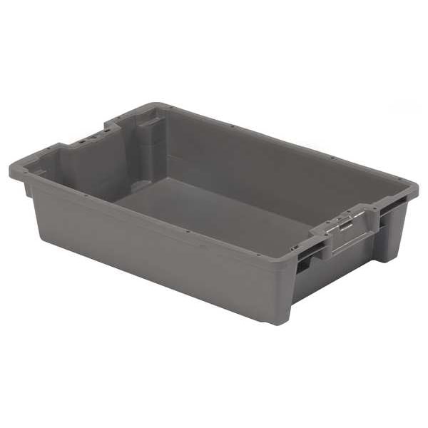 Stacking and Nesting Tote, Container Wall Type Solid, Includes Lid Lid Not Included, Material Plastic, Maximum Operating Temperature 120 Degrees F, Minimum Operating Temperature 0 Degrees F, Body Color Gray, Nestable Nesting Capable, Overall Height 5 1/4 in, Overall Length 23 5/8 in, Overall Width 15 3/4 in, Stackable Stacking Capable, Stacking Capacity 300 lb, Volume Capacity 6 gal, Weight Capacity 70 lb, NSF Certified Not NSF Certified, Bottom Inside Length 19 1/4 in