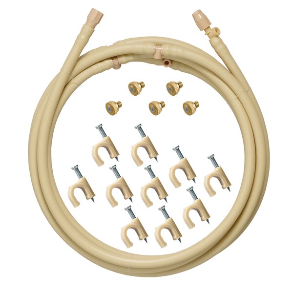 The basic extension mist cooling kit lets you extend the length of your mist system, giving added cooling performance to your outdoor space. Simply attach to the existing basic preassembled mist cooling kit (required) and wrap the kit where you want it to go.