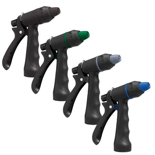 The Rear Trigger Adjustable Nozzle is fully adjustable from a delicate spray for watering plants to a targeted jet spray for cleaning debris from sidewalks and driveways. The rear trigger modifies water pressure allowing for quick adjustments to the flow of water. The lock-on clip holds the trigger in place which allows for continuous water flow reducing hand fatigue. Contoured handle provides enhanced grip and comfort while watering. *