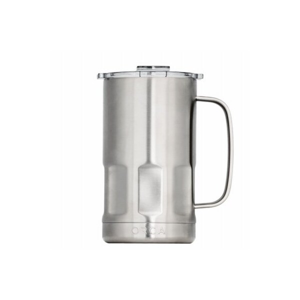 ORCA 28OZ Stainless Steel STEIN. Double Walled Vacuum Sealed Body Tapered Body Design Polyester Whale Tail Flip Top Clear Lid Keeps Hot Liquids Hot For Up To 12 Hours Keeps Cold Liquids Cold For Up To 24 Hours BPA Free.