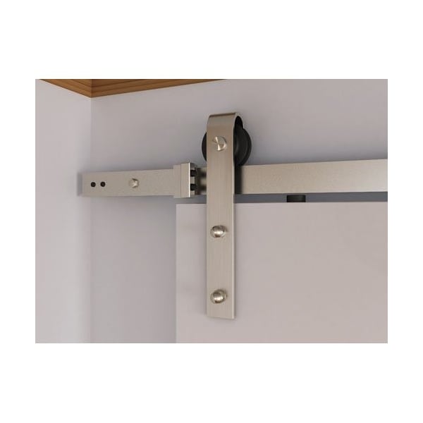 8' Flat Track Kit, Standard Drop Hangers, Includes Track, Hangers, Spacers, End Stops, Floor Guide, Connector, Anti-Jump Blocks and All Necessary Fasteners, SN Satin Nickel Finish