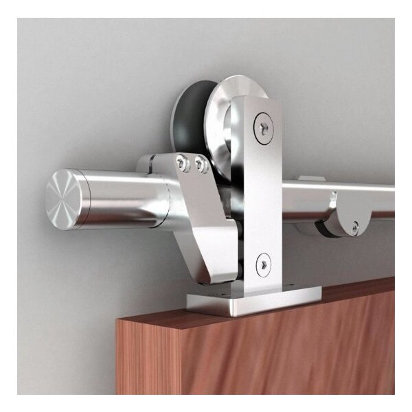 8' Round Track Kit, Top Mount Hangers, Includes Track 25mm Dia x 2mm Thick, Hangers, Spacers, End Stops, Floor Guide, and All Necessary Fasteners, SS Stainless Steel Finish