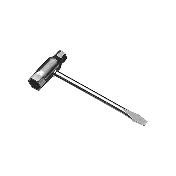 A combination screwdriver and wrench to make chainsaw guidebar removal, chain tensioning, and other chain saw maintenance easier