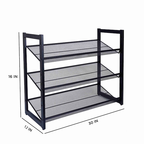 3 Tier Adjustable Mesh Shoe Rack in Black