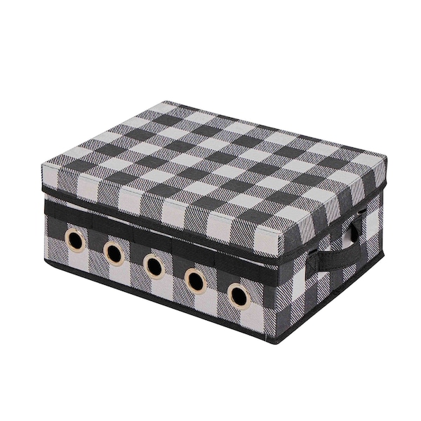 Simplify Buffalo Plaid Gift Wrapping and Ribbon Storage Organizer Box in Black & White