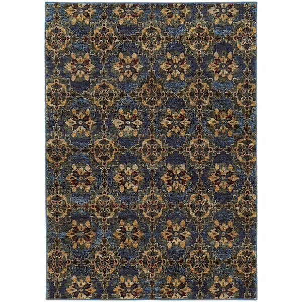 Area Rugs, Andorra 6883C 3X5 Rectangle - Blue/ Gold-Nylon/Polyp
