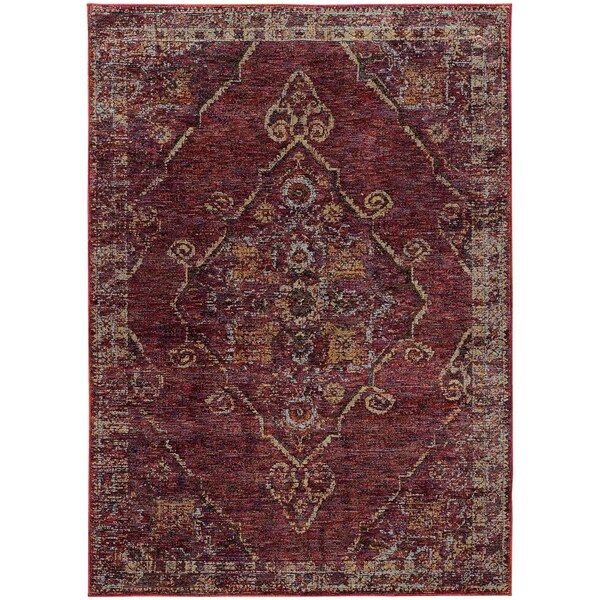 Area Rugs, Andorra 7135E 8X10 Rectangle - Red/ Gold-Nylon/Polyp
