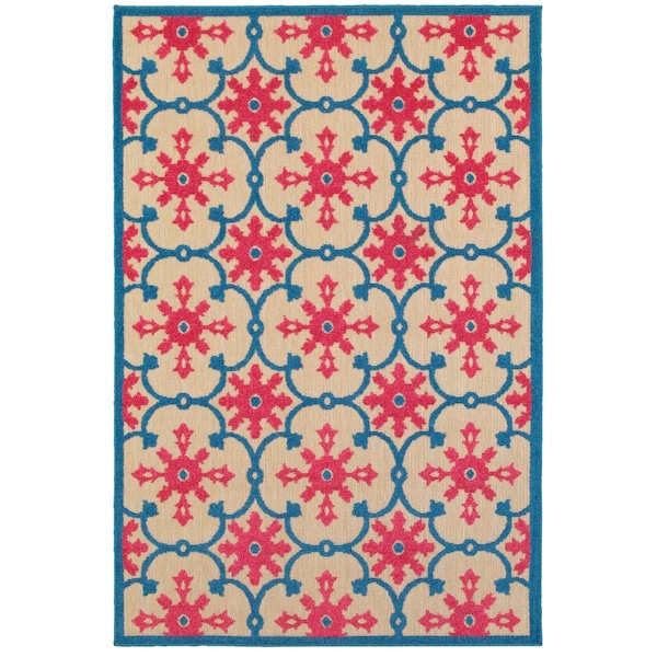 Area Rugs, Cayman 190L9 4X6 Rectangle - Sand/ Pink-Polypropylene