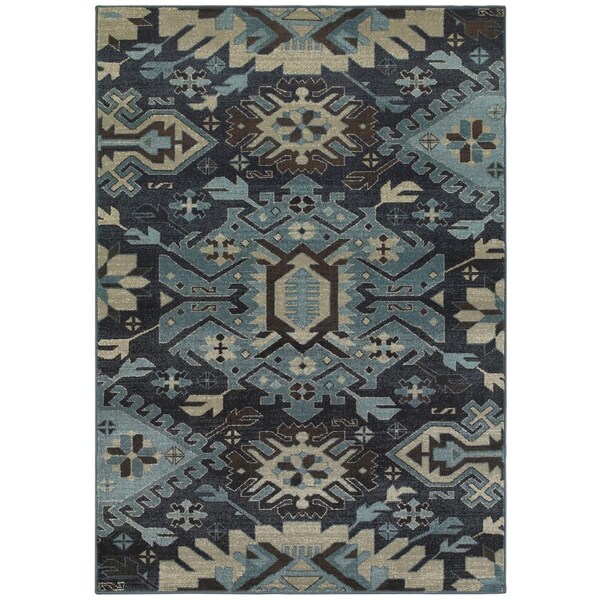 Area Rugs, Linden 4302A 10X13 Rectangle - Navy/ Blue-Polypropylene