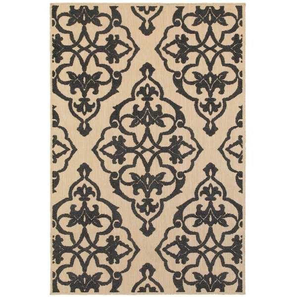 Cayman 001B9 5x8 Rectangle - Sand/ Charcoal-Polypropylene