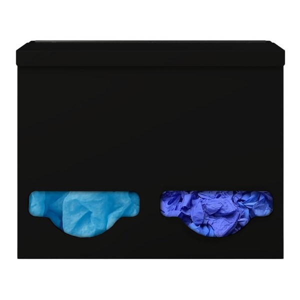 ORIGIN Double Bulk Dispenser - Black Coated Steel 2 Compartments. Dual Dispense. Wall Mount Durable, dual-compartment bulk dispenser with top-loading and top/bottom dispensing for versatile use. Crafted from black coated steel for long-lasting strength and a clean, professional look. Ideal for efficient storage in industrial, or other workplace environments..