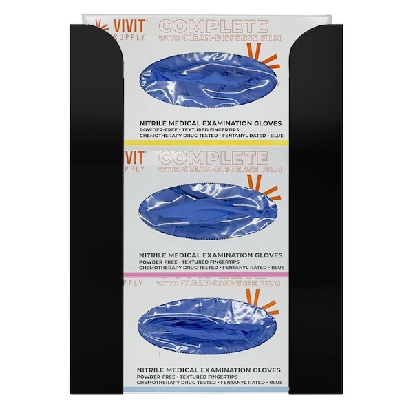 ORIGIN Triple Glove Box Dispenser - Wall Protected, Vertical Mount Black Powder-Coated Steel. Bold & DurableHolds three horizontally oriented glove boxes while mounting vertically to protect walls with a full steel back. Supports stacking for added glove storage without clutter. Crafted from rugged black powder-coated steel for a durable, modern look. -perfect for contemporary or high-traffic environments.