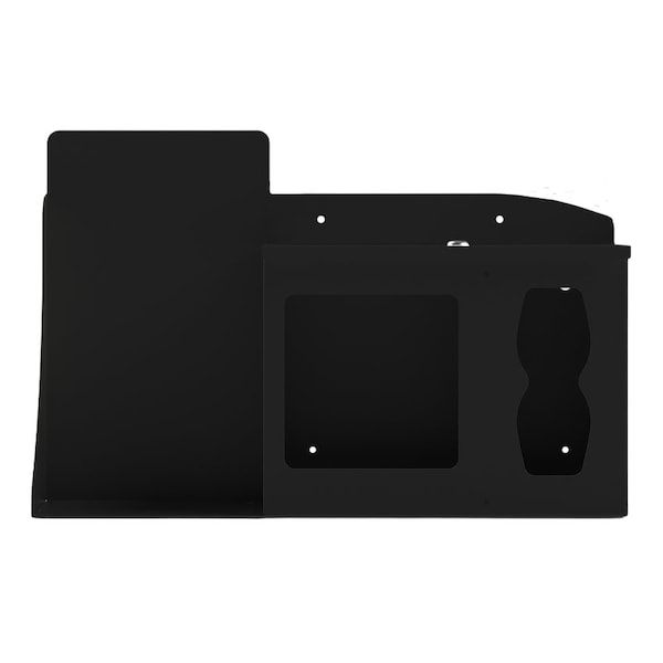 ORIGIN Locking Respiratory Hygiene Station - Black Steel Secure. Sleek Organize and protect essential PPE supplies with this locking hygiene station, designed to hold two boxes of masks, one to two boxes of facial tissues, and a designated space for mounting a hand sanitizer dispenser. Constructed from black powder-coated steel for a modern, professional look that resists wear in public or clinical environments. Features a hinged locking lid to prevent tampering and integrated keyholes for wall mounting or optional ORIGIN Floor Stand compatibility. Ideal for facilities prioritizing security, style, and cleanliness. Sign Holder Not Included.