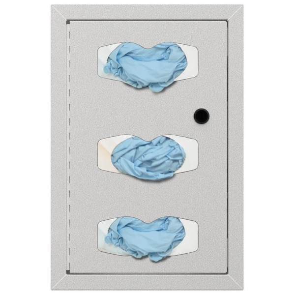 ORIGIN Semi-Recessed Triple Glove Dispenser - Secure & Space-Saving Storage! Compact. Durable. ADA Compliant Keep gloves organized and accessible with this semi-recessed triple glove dispenser. It holds three boxes of gloves while maintaining a sleek, low-profile design. The keyless locking system ensures secure access, and pre-drilled screw holes make wall mounting quick and easy. Built from durable quartz beige powder-coated steel, this dispenser is as practical as it is sturdy. It is ADA & CMS Wall Protrusion compliant, ensuring a seamless fit in any healthcare or professional setting.. Optimize your storage today-order now!