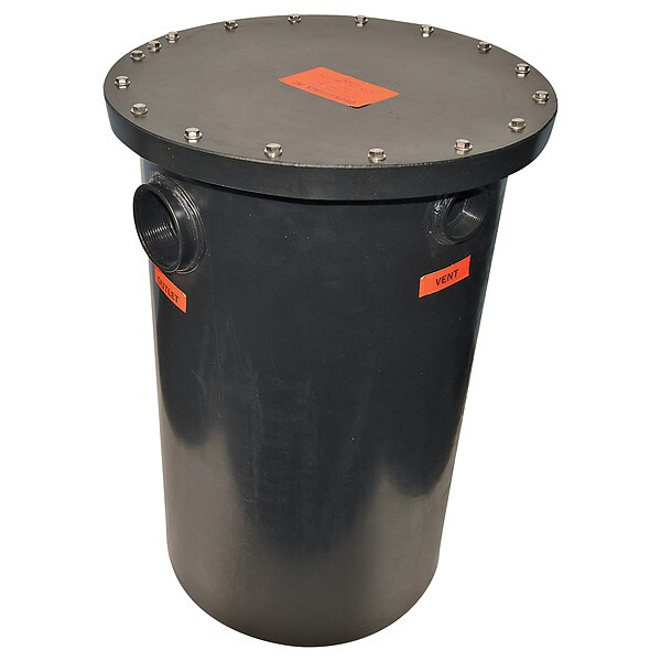 Dilution Tank, Product Type Dilution Tank, Overall Depth 49 in, Overall Width 24 in, Color Black, Inlet Connection Gender Female, Outlet Connection Gender Female, Tank Capacity 100 gal, Standards ASTM D-1248, Neutralization Method Dilution, Includes Cleanout No, Holding Temperature Continuous 180 Degrees F, Holding Temperature Intermitted 212 Degrees F, Outlet Pipe Size 4 in, Inlet Connection Type Threaded, Outlet Connection Type Threaded, Inlet Pipe Size 4 in, Material Plastic