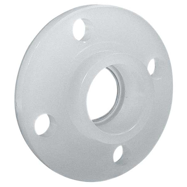 Flange, Raised, 3/4 in Nominal Pipe Size, Slip-On, 3 1/16 in Flange Outside Diameter, 3/8 in Flange Thickness, Schedule 80, Class Class 150, For Pipe Schedule Schedule 80, Polypropylene, 150 psi Maximum Operating Pressure, 0 Degrees to 180 Degrees F, Number of Bolt Holes 4, 2 3/4 in Bolt Circle Diameter, 9/16 in Bolt Hole Diameter, 3/4 in Overall Length, White