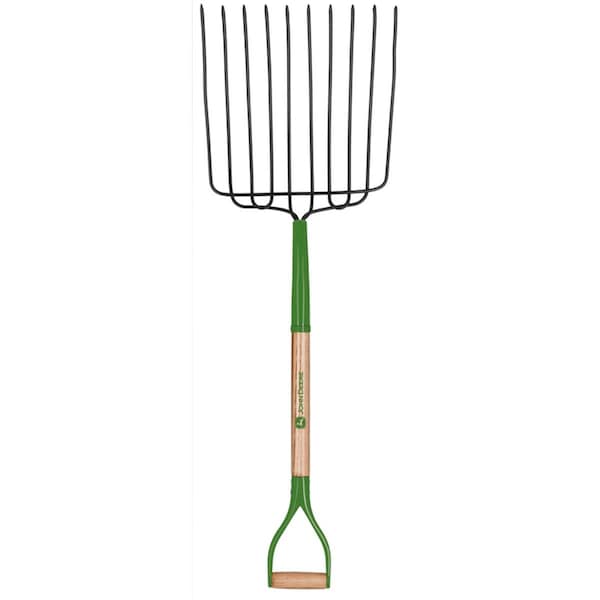 30 in. 10 Tine Steel Bedding Fork with Wood Handle, Green