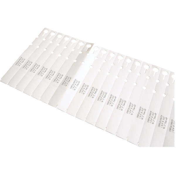 1"W x 9"L overall. 12-mil thick, with a printable area of 5"L. 1,000 tags per roll.