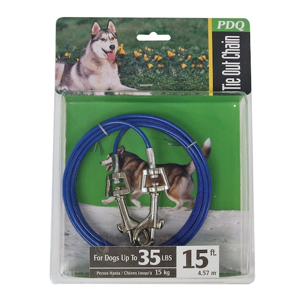 PDQ Blue / Silver Tie-Out Vinyl Coated Cable Dog Tie Out Medium