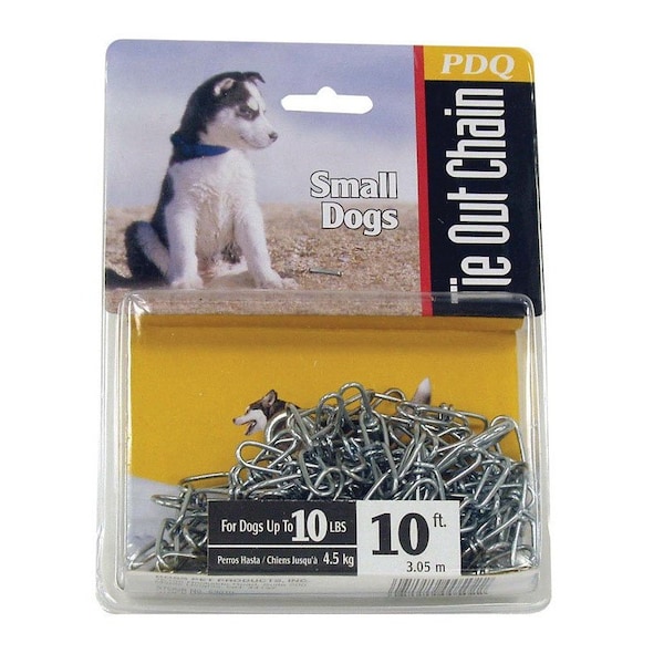 Boss Pet 53010 10 feet small dog swivel chain tie-out boss pet 53010 10 feet small dog swivel chain tie-out features best for small dogs up to 10 lbs. Weldless double loop chain steel wire swivel snap on both ends bright zinc finish chain size 10 feet x 1.8 mm.