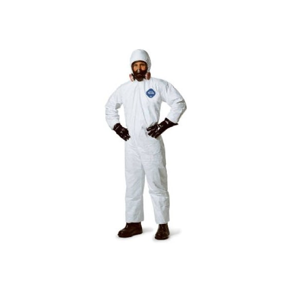Tyvek, 25 Pack, Extra Large, White, Hooded Disposable Coveralls, Closure Type Zipper, Serged Seam Style, Feature Elastic Wrists Ankles Fabric Weight 12 OZ, Standards USDA, FDA, OSHA