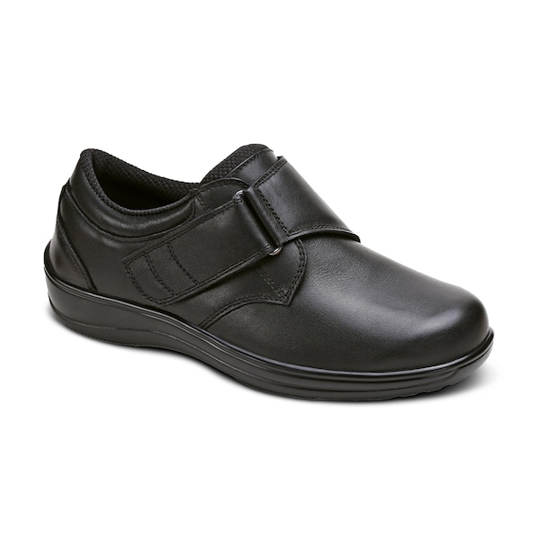 Soft leather upper, offers a non-binding fit. Durable and easy-to-clean.,Adjustable monk strap ,closure for a wide opening that's easy to take on & off and secure a perfect fit,Wide toe-box, alleviates pressure on swollen feet, bunions, and hammertoes and allows the freedom of natural foot movement,Soft, padded fabric interior, with no overlays or seams. Eliminates irritation and provides superior protection for sensitive feet, including those with neuropathy and diabetes,Features the Ortho-Cushion System:,Removable Premium Orthotic Insole, - Multilayer advanced cushioning and anatomical arch support for proper alignment. Included Arch Booster to customize your support. ,Ergonomic Sole, - Mild rocker design with integrated cushioning to improve the ease of walking and relieve foot & heel pain and other symptoms for over 20 conditions and a variety of mobility issues.,Extra depth & included fitting spacers - to customize a pressure-free fit for a wide range of feet shapes, as well as medical inserts. Each shoe comes with two fitting spacers, either or both can be placed under the Orthotic Insole to optimize the interior volume and depth for each foot.,Rubber outsole, provides excellent traction and stability.