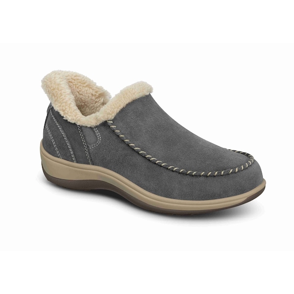 Supple suede water repellent ,upper offers a non-binding fit,Patented slip-on technology - for hands-free on & off ease, with the need to bend over. Our revolutionary heel design keeps footwear from slipping off unexpectedly when walking. ,Ideal for, - back pain, knee pain. arthritis, mobility issues, pregnancy, difficulty bending down and anyone of the go. ,Soft, padded faux fur interior ,(including the insole), ,keeps feet warm & protects sensitive feet,Wide toe-box, alleviates pressure on swollen feet, bunions, and hammertoes and allows the freedom of natural foot movement,Features the Ortho-Cushion System:,Removable Premium Orthotic Insole, - Multilayer advanced cushioning and anatomical arch support for proper alignment. Included Arch Booster to customize your support. ,Ergonomic Sole - ,Mild rocker design with integrated cushioning to improve the ease of walking and relieve foot & heel pain and other symptoms for over 20 conditions and a variety of mobility issues.,Extra depth & included fitting spacers - to customize a pressure-free fit for a wide range of feet shapes, as well as medical inserts. Each shoe comes with two fitting spacers, either or both can be placed under the Orthotic Insole to optimize the interior volume and depth for each foot.,Slip resistant outsole, provides excellent traction and stability on wet surfaces.,
