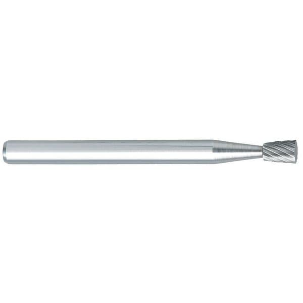 Inverted Cone Bur, End Type Flat, Cut Type Single, Shank Dia. 1/8 in, Head Dia. 1/8 in, Head Length 3/16 in, Included Angle 10 Degrees , Overall Length 1 1/2 in, Trade Number SN-42, Head Shape Inverted Cone, Operating Speed - Maximum 80,000 RPM, List Number 900, Coating Bright (Uncoated), Head Material Carbide, Shank Material Carbide