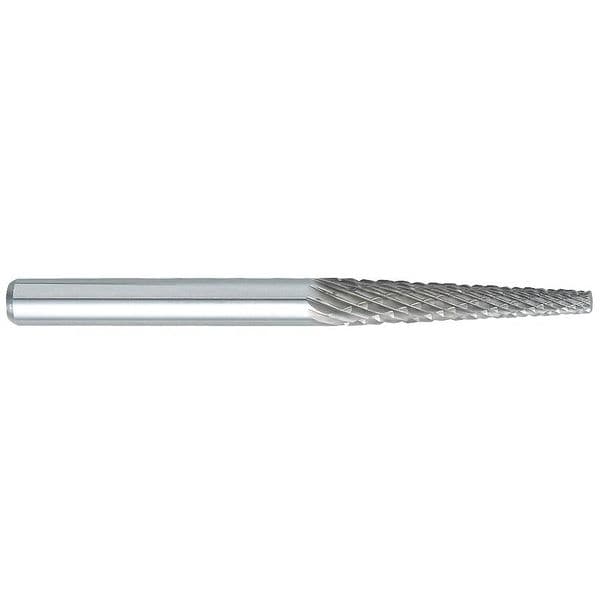 Cone Bur, End Type Pointed, Cut Type Double, Shank Dia. 3 mm, Head Dia. 3 mm, Head Length 16 mm, Included Angle 7 Degrees , Overall Length 38 mm, Trade Number SM-43, Head Shape Cone, Operating Speed - Maximum 80,000 RPM, List Number 800, Coating Bright (Uncoated), Head Material Carbide, Shank Material Carbide