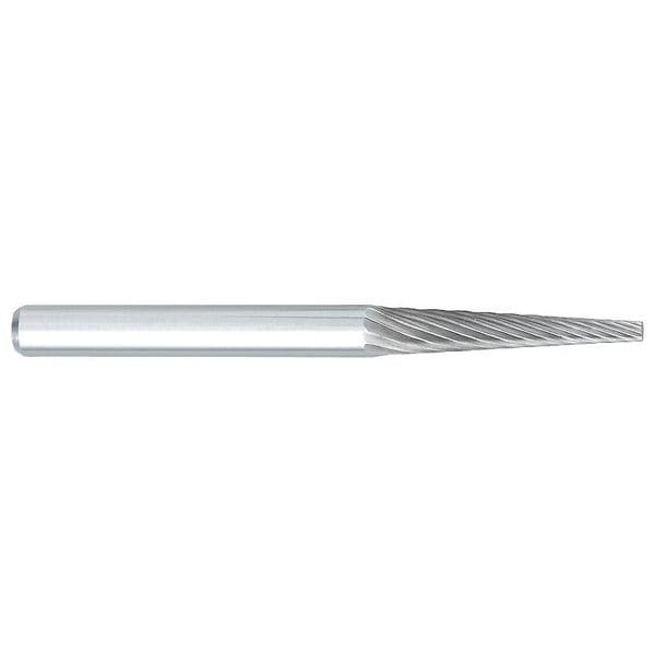 Cone Bur, End Type Pointed, Cut Type Single, Shank Dia. 1/8 in, Head Dia. 1/8 in, Head Length 5/8 in, Included Angle 7 Degrees , Overall Length 1 1/2 in, Trade Number SM-43, Head Shape Cone, Operating Speed - Maximum 80,000 RPM, List Number 900, Coating Bright (Uncoated), Head Material Carbide, Shank Material Carbide