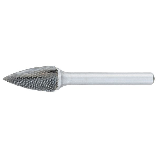 Tree Bur SG, End Type Pointed, Cut Type Single, Shank Dia. 1/4 in, Head Dia. 1/2 in, Head Length 1 in, Included Angle Not Applicable, Overall Length 2 in, Trade Number SG-5, Head Shape Tree, Operating Speed - Maximum 50,000 RPM, List Number 904, Coating Bright (Uncoated), Head Material Carbide, Shank Material Hardened Steel
