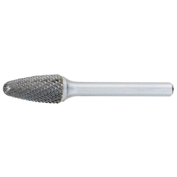 Tree Bur SF, End Type Radius, Cut Type Double, Shank Dia. 1/4 in, Head Dia. 1/2 in, Head Length 1 in, Included Angle Not Applicable, Overall Length 6 in, Trade Number SF-5L6, Head Shape Tree, Operating Speed - Maximum 50,000 RPM, List Number 863, Coating Bright (Uncoated), Head Material Carbide, Shank Material Hardened Steel