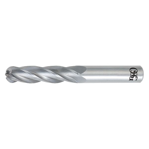 Ball End Mill, 4 mm Milling Dia., Carbide, Uncoated, Non-Coolant Through