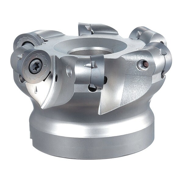 Indexable Profiling End Mill, Max. Cutting Dia. 63.00mm, Depth of Cut 0.1250 in, Shank Dia. 10.00mm, Overall Length 40.00mm, ANSI Code PRC16R063M22-5, Compatible Hardware 7808113, 7808151, 7808209, Connection Size HSK40, Coolant Fed Coolant Through, Cutting Application Rough Milling