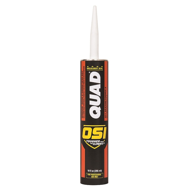 Arm yourself against the elements with OSI Quad Window, Door & Siding Sealant. OSI Quad Window, Door & Siding Sealant is an all-season formula designed for superior performance on exterior window, door and siding applications, fiber-cement and vinyl siding, PVC trim, and much more. It can be applied to wet or dry surfaces, even at freezing temperatures and, unlike other sealants, it resists dirt and dust collection, yellowing and water washout. OSI Quad bonds without a primer to most common substrates like cedar, painted or stained woods, fiberglass, vinyl, coated aluminum, steel, metal, brick, masonry and concrete. With resistance to UV and extreme temperatures (20 deg F to 120 deg F) and proven wet surface application, OSI Quad is the versatile and durable choice for professional contractors. OSI Quad is self-tooling and once cured is paintable with latex paints. Our color specialists work closely with leading window, door and siding manufacturers to ensure perfect color matches. OSI Quad is composed of elastomeric polymers and high quality synthetic resins. OSI offers an arsenal of adhesives, caulks, and outdoor construction sealants for the true professional. OSI: Tougher Than the Elements.