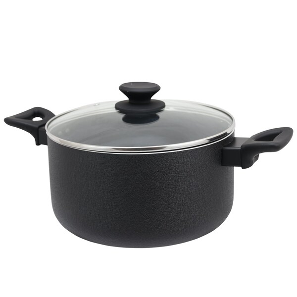 Ashford 6 Quart Aluminum Dutch Oven with Tempered Glass Lid in Black