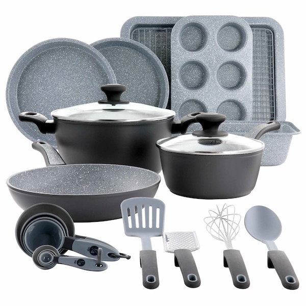 Bastone 23 Piece Nonstick Cookware Bakeware Set in Speckled Gray