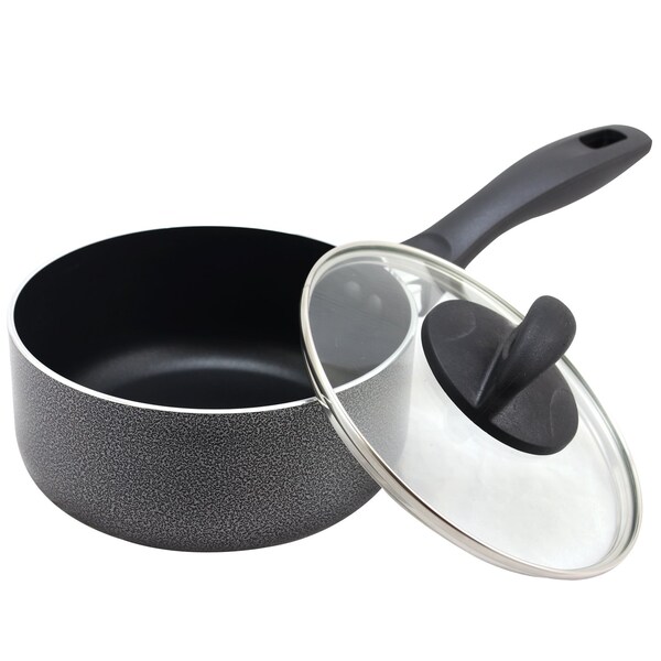 The Clairborne 1.5 Quart Aluminum Sauce Pan with Lid will create a sleek and dynamic look for your kitchen. This beautifully textured and long-lasting saucepan will allow you to cook soups and sauces for family or guests, making it ideal for many dinner gatherings and events to come. Its nonstick interior makes cooking and cleaning easy while also allowing you to make healthier dishes and skip using any oils or fats. Never let heat escape from your culinary creations again with the help of the matching vented glass lid allowing for easy meal monitoring. The Ashford will add a touch of elegance to your everyday meal prep routine. Includes: 1 Gray 1.5 Quart Aluminum Sauce Pan with 1 Paired Glass Lid Pan measures: 13" x 6.5" x 3" - 1.5 qt fluid capacity The perfect companion for your sauce-simmering needs!
