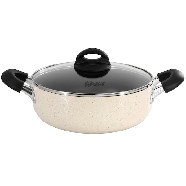 The Oster Clairborne 3.6 Quart Nonstick Aluminum Caldero with Lid in Linen is a kitchen essential that seamlessly combines style and functionality. Crafted from high-quality aluminum, this caldero ensures even heat distribution for consistent cooking results. Its generous 3.6-quart capacity makes it perfect for preparing family-sized meals, while the nonstick interior coating guarantees easy food release and hassle-free cleanup. Included tempered glass lid allows you to monitor your cooking progress without losing heat or moisture. Whether you're hosting a dinner party or simply feeding a hungry family, this versatile pot is a valuable addition to any kitchen arsenal. Whether you're simmering soups, stews, or sauces, the Oster Clairborne caldero delivers exceptional performance every time, making it a must-have for both novice cooks and seasoned chefs alike.