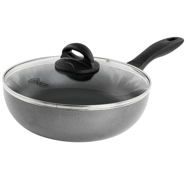 The Oster Clairborne 9.5 Inch wok is perfect for preparing one pot meals and more for your family. Constructed of a durable aluminum body with cool touch handle and knob, this pan is safe to move from burner to burner while cooking and made to heat evenly for consistent results. Non stick interior coating for easy release and low fat cooking. This wok also comes with a tempered glass lid that is vented so you can easily monitor your cooking progress without opening the lid. Hand wash recommended.