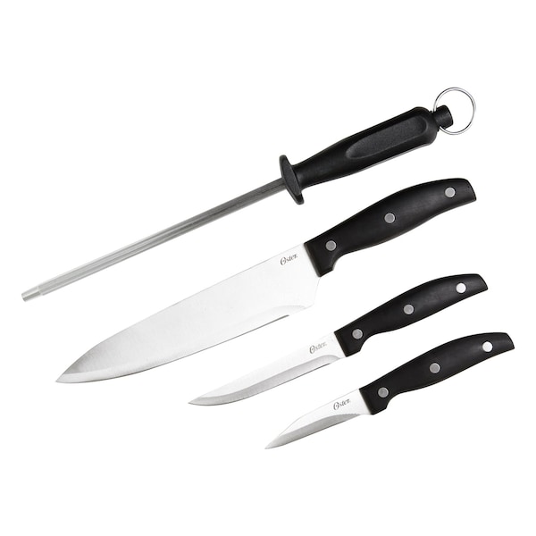 Make sure all your slicing and dicing needs are met with the Oster Granger 4 Piece Stainless Steel Blade Cutlery Set. Each knife of this collection boasts precision and durability, with stain and rust resistant blades, you can be sure this cutlery knife set will last. Ergonomically designed handles for comfort.