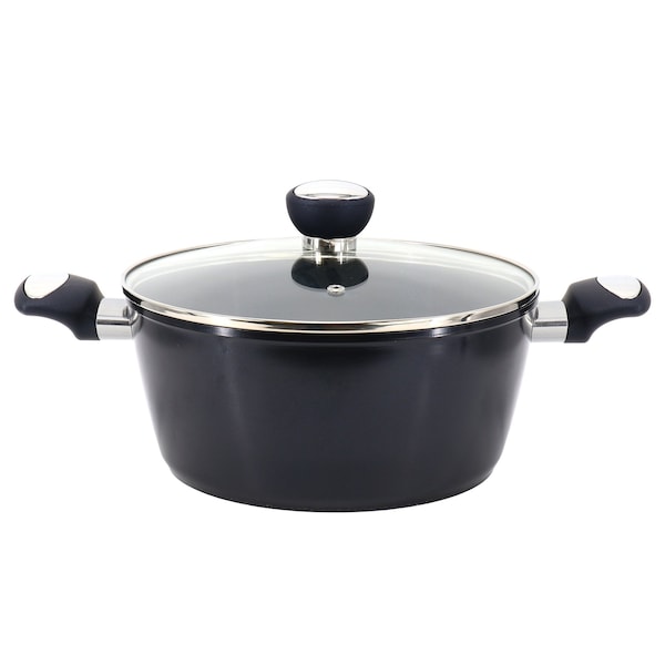 Cook up your favorite meals in this reliable Oster Hawke 4.2 Quart Ceramic Nonstick Aluminum Dutch Oven with Lid. The ceramic nonstick coating, free from PFOA and PTFE, offers superior food release so you can cook with less fats and oils while avoiding burning your food. A vented tempered glass lid allows you to keep an eye on your foods and release steam while they cook so you won't need to remove the lid in the process. The forged aluminum body is sturdy and provides even heat distribution while the bakelite handle offers a comfortable, cool grip. Imagine yourself cooking up all your favorite soups, sauces, and more in this fantastic saucepan!