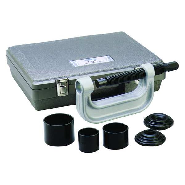 Ball Joint Service Kit, Tool Type Ball Joint Service Kit, Application Removal and Installation of Press Fit Parts such as Ball Joints, Universal Joints, Truck Brake Anchor Pins, For Use With Breaker Bar, Ratchet, Material Carbon Steel, Overall Length 16 1/8 in, Includes Receiving Tube (29503), Receiving Tube (29504), Receiving Tube (29505), Removing Adapter (305227), Removing Adapter (305228), Number of Pieces 6, Size 16 7/64 in x 16 in x 5 45/64 in