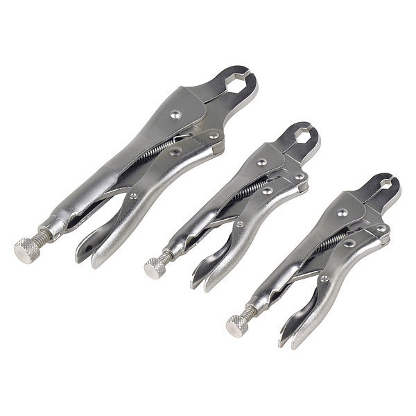 Flare Nut Locking Plier Set, Tool Type Flare Nut Locking Plier Set, Application Flare Nuts, Overall Length 9 5/16 in, Number of Pieces 3, Material Steel, For Use With Vehicles, Number of Sockets Included 0, Stock Size 9.3 in