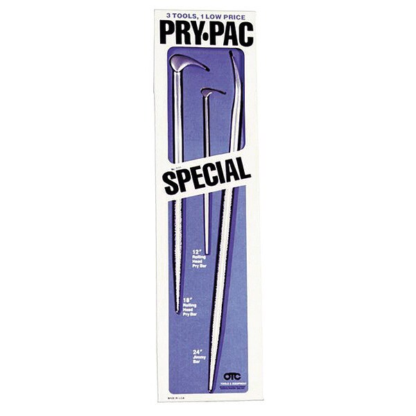 (2) Rolling Head Pry Bar 12", 18"; (1) Jimmy Bar 24"