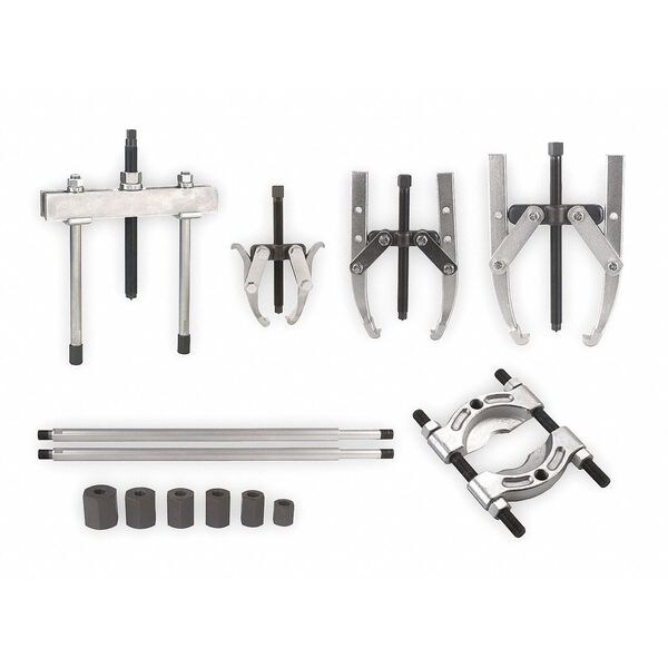 Puller Set, Includes Push-Puller With 9 1/2 in Legs, 16 1/2 in Legs, 3 Jaw Pullers,Bearing Splitter, And Threaded Adapters, Number of Jaws 3, Number of Pieces 12, Features Versatile